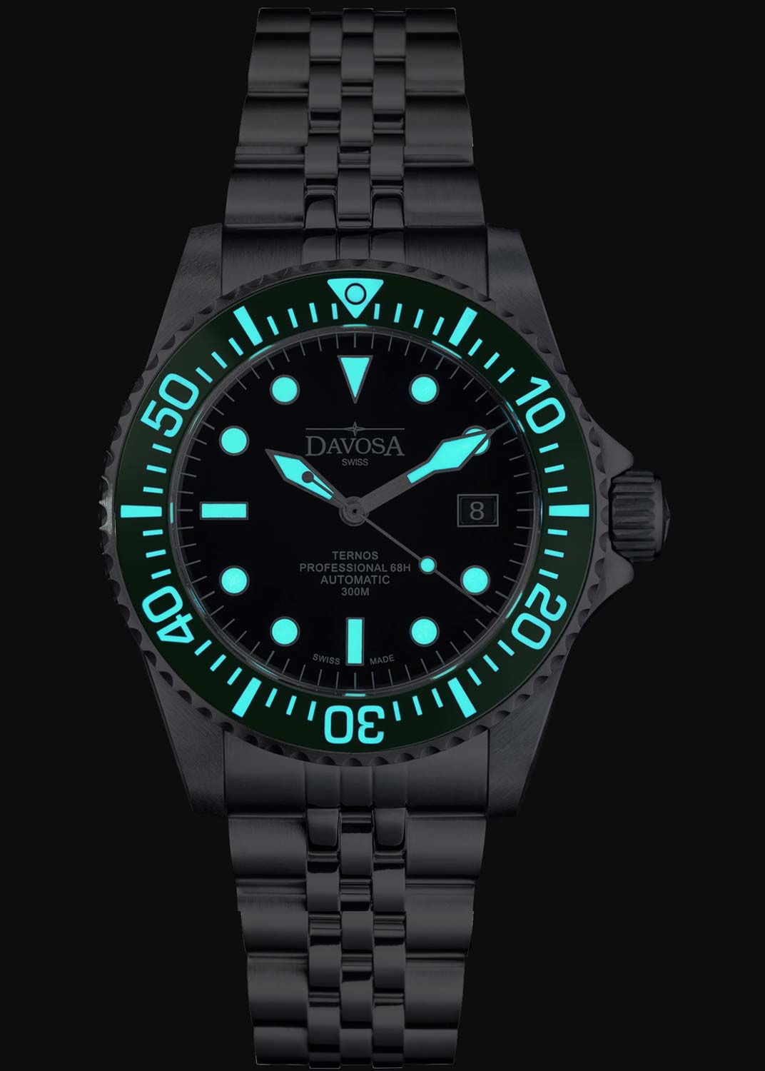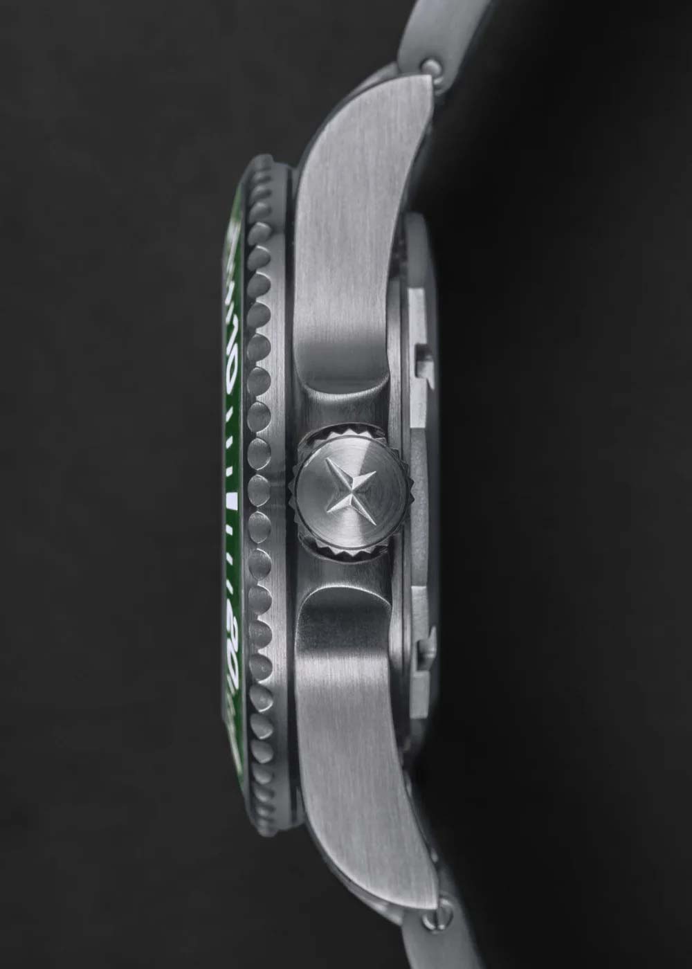 Окошко даты находится в положении 3 часа. Рифленый безель с керамической вставкой вращается в одном направлении. Завинчивающаяся рифленая заводная головка с защитой. Завинчивающаяся задняя крышка. Надежный стальной браслет с раскладывающейся застежкой, предохранительными кнопками и точной регулировкой WaveSlide.