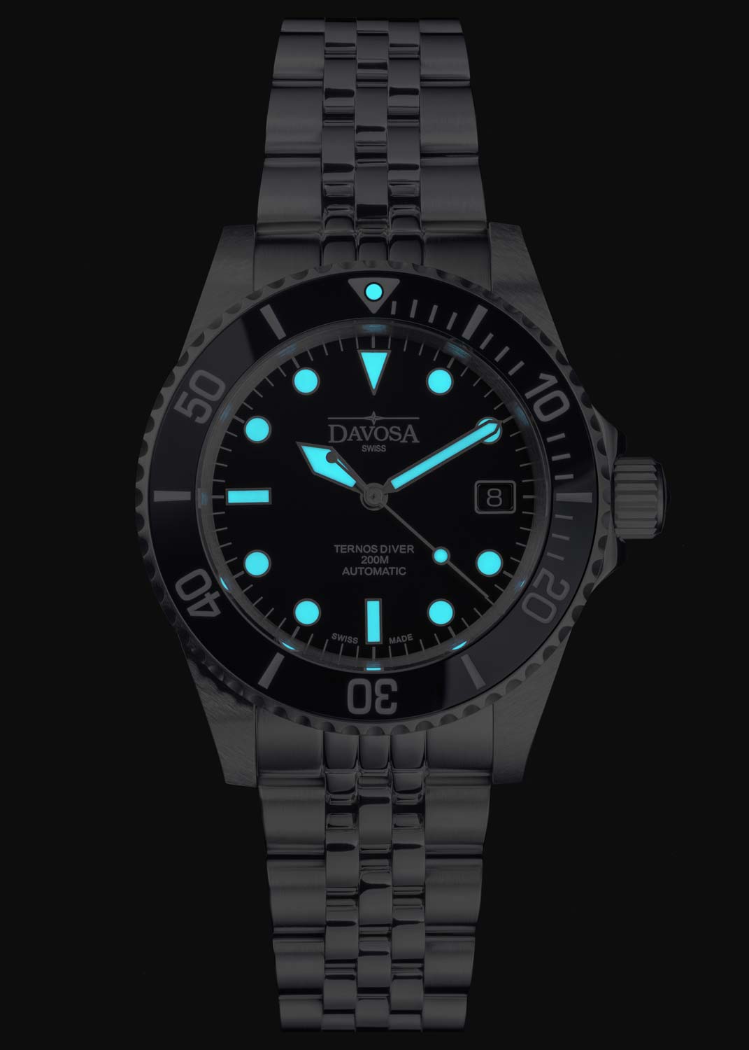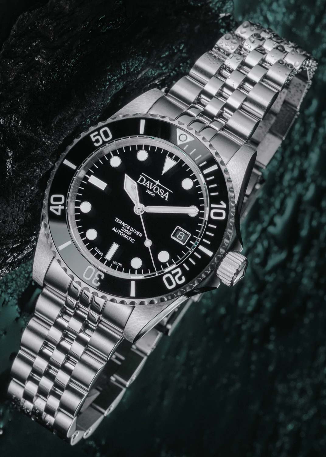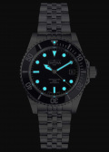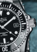Окошко даты находится в положении 3 часа. Рифленый безель с керамической вставкой вращается в одном направлении. Завинчивающаяся рифленая заводная головка с защитой. Завинчивающаяся задняя крышка. Надежный стальной браслет с раскладывающейся застежкой, предохранительными кнопками и точной регулировкой WaveSlide.