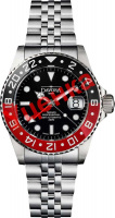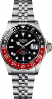 Мужские механические часы с автоподзаводом Ternos Professional GMT Diver. Круглый стальной корпус. Керамический безель вращается в одном направлении. Циферблат защищен устойчивым к царапинам сапфировым стеклом с антибликовым покрытием. Окошко даты с увеличительным стеклом находится в положении 3 часа. Второй часовой пояс в 24-х часовом формате времени, отображается центральной стрелкой. Стрелки часов и метки в виде штрихов и точек с люминесцентным покрытием SuperLumiNova BGW9, которое эффектно светится в темноте. Функция остановки секундной стрелки. Завинчивающаяся рифленая заводная головка с защитой. Завинчивающаяся задняя крышка. Надежный стальной браслет с раскладывающейся застежкой.