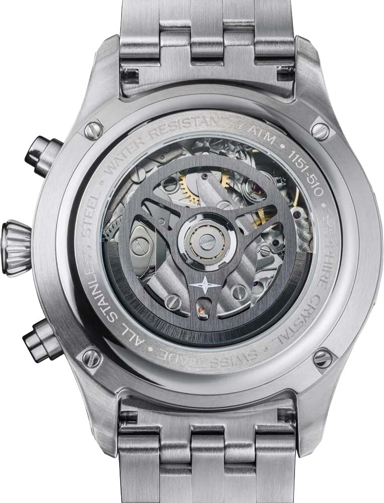 Стрелки и метки с люминесцентным покрытием SuperLuminova, которое светится в темноте после непродолжительной зарядки на свету. Рифленая заводная головка. Задняя крышка с прозрачным окошком крепится на 4-х винтах. Надежный стальной браслет с регулируемой застежкой.