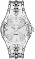 Часы в стальном корпусе. Метки в виде штрихов. Окошко даты. Рифленая заводная головка. Стальной браслет.