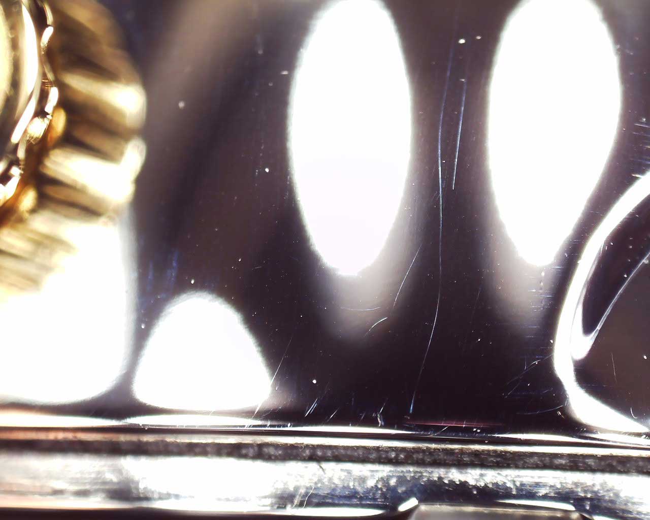 На основном циферблате: метки в виде штрихов, минутная шкала, счетчики на 60 секунд и 30 минут, 12-ти и 24-х часовой формат времени, окошко даты в положении 3 часа. На двух дополнительных циферблатах указатели часов и минут в виде вращающихся дисков, на третьем — на вращающемся диске указатель секунд. Кожанный ремешок.