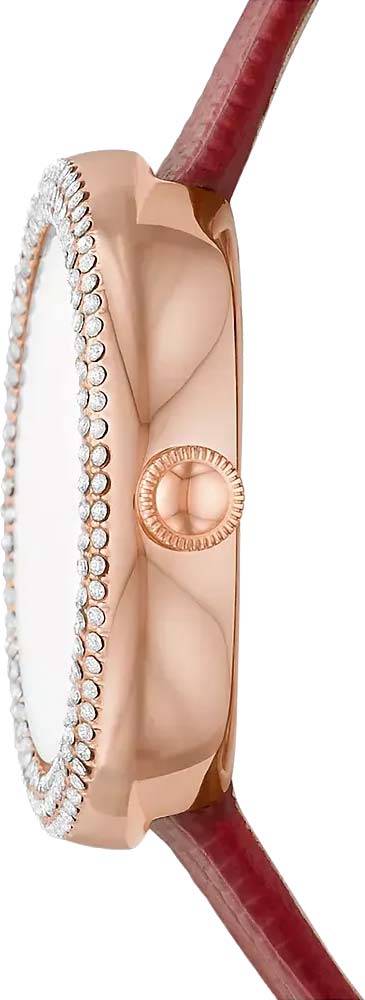 Рифленая заводная головка. Задняя крышка крепится на винтах. Удобный текстурированный кожаный ремешок с классической застежкой.