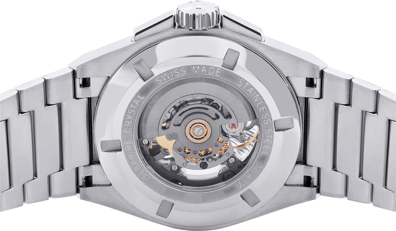 Прозрачная задняя крышка с минеральным стеклом. Заводная головка с защитой. Браслет с раскладывающейся застежкой.