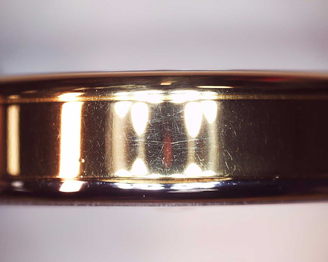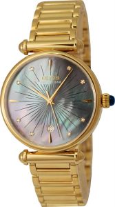 Переливающийся перламутровый циферблат украшен бриллиантами и защищен прочным сапфировым стеклом. Заводная головка украшена сапфиром в форме кабошона.