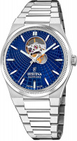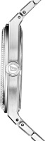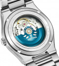 Рифленая заводная головка. Завинчивающаяся прозрачная задняя крышка. Стальной браслет с раскладывающейся застежкой.