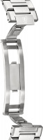 Рифленая заводная головка. Завинчивающаяся прозрачная задняя крышка. Стальной браслет с раскладывающейся застежкой.