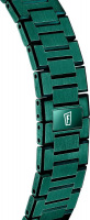 Рифленая заводная головка. Стальной браслет с раскладывающейся застежкой.