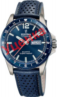 Festina предлагает изысканный дизайн, постоянные технологические инновации и отличное соотношение цены и качества. Мужские наручные часы. Круглый титановый корпус. Безель с часовыми метками. Циферблат выполнен по технологии Sunray (солнечные лучи). Метки в виде штрихов и арабской цифры 12. Окошко даты находится в положении 3 часа. Рифленая заводная головка с защитой. Завинчивающаяся задняя крышка. Перфорированный ремешок из натуральной кожи с классической застежкой.