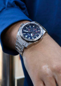 Завинчивающаяся рифленая заводная головка с защитой. Надежный стальной браслет с раскладывающейся застежкой.