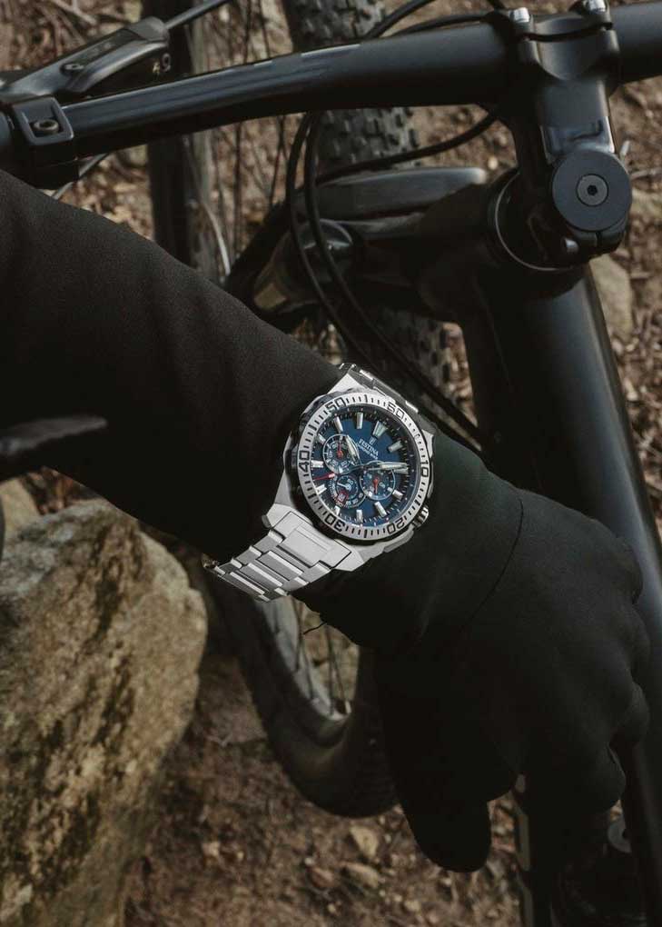 Циферблат выполнен по технологии Sunray (солнечные лучи) и украшен фирменным логотипом Festina Chrono Bike. Накладные метки в виде штрихов. Окошко даты находится в положении 6 часов.