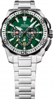 Циферблат выполнен по технологии Sunray (солнечные лучи) и украшен фирменным логотипом Festina Chrono Bike. Накладные метки в виде штрихов. Окошко даты находится в положении 6 часов.