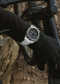 Завинчивающаяся рифленая заводная головка с защитой. Надежный стальной браслет с раскладывающейся застежкой.