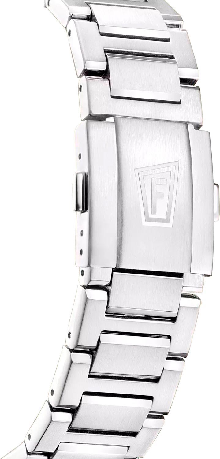 Завинчивающаяся рифленая заводная головка с защитой. Надежный стальной браслет с раскладывающейся застежкой.