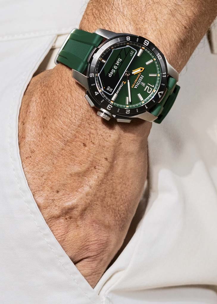 В нижней части циферблата находится умный OLED дисплей, который устанавливает связь со смартфоном через Bluetooth 5.0. Управлять информацией на экране часов можно через специальное приложение. Умные функции включают: звонки, поиск телефона, контроль музыки и камеры, GPS функции, погода, мировое время, таймер, секундомер, беззвучный будильник, пульсометр.