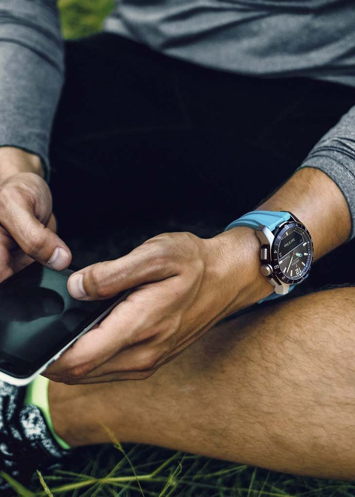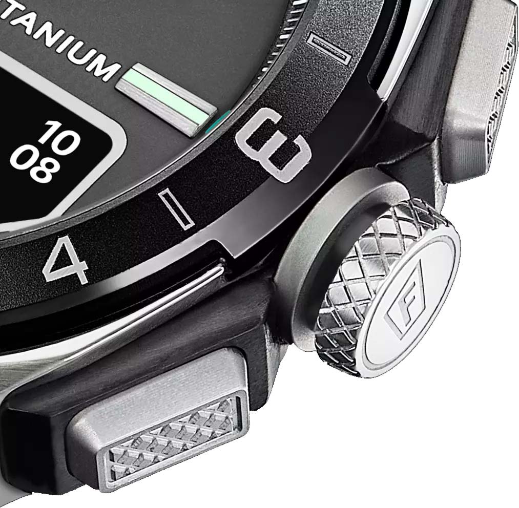 В нижней части циферблата находится умный OLED дисплей, который устанавливает связь со смартфоном через Bluetooth 5.0. Управлять информацией на экране часов можно через специальное приложение. Умные функции включают: звонки, поиск телефона, контроль музыки и камеры, GPS функции, погода, мировое время, таймер, секундомер, беззвучный будильник, пульсометр.