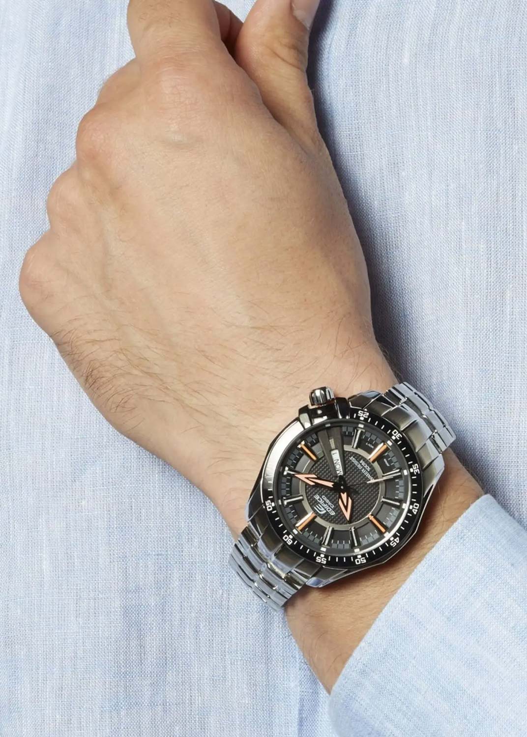 - мужские, японские, кварцевые, 100WR, стекло: минеральное, 44x49,5мм, толщина 10,6мм, вес 164г, EF-130