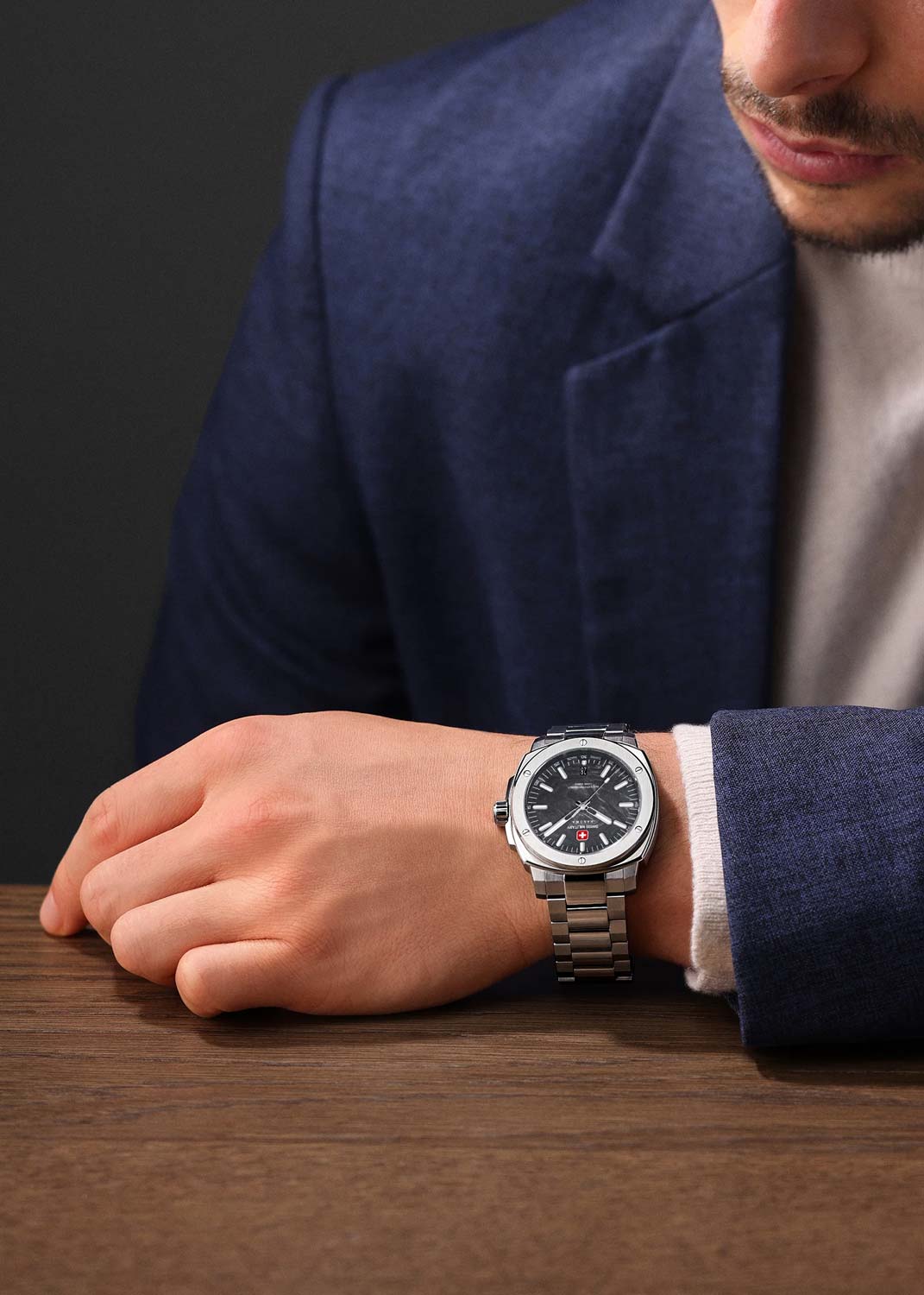 - мужские, швейцарские, механические с автоподзаводом, 100WR, стекло: сапфировое