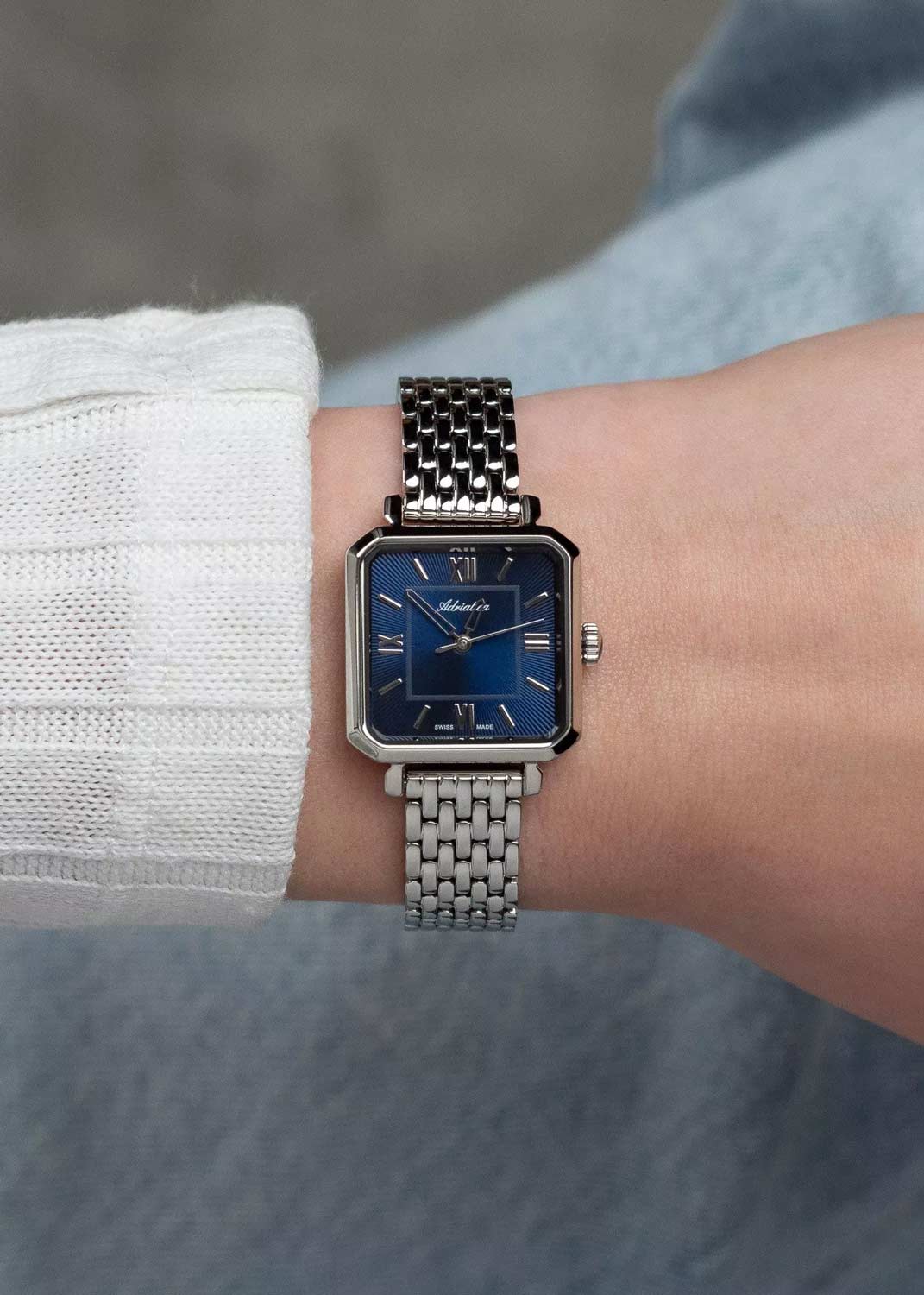- женские, швейцарские, кварцевые, 30WR, стекло: минеральное, 24х24мм, толщина 7,5мм, ширина браслета 12мм, вес 53г