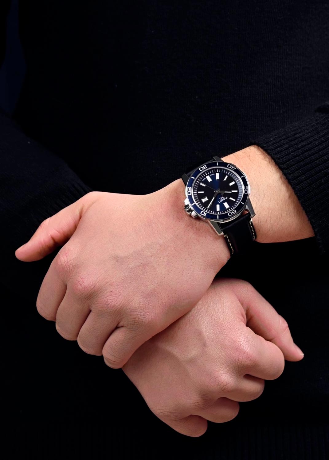 - мужские, швейцарские, механические с автоподзаводом, 200WR, стекло: сапфировое с антибликовым покрытием