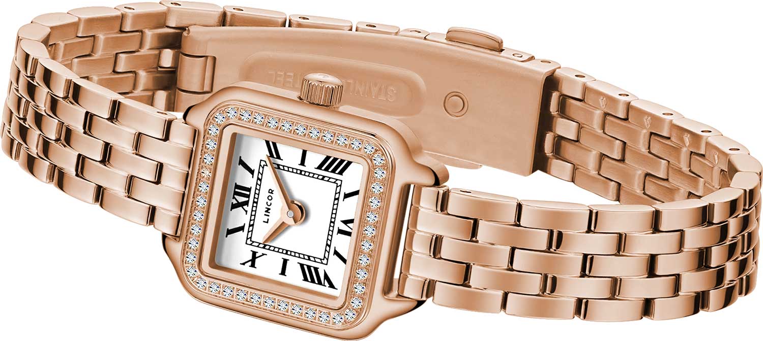 - женские, США, кварцевые, 50WR, стекло: минеральное, D 38мм, толщина 9,8мм, ширина браслета 18мм, длина браслета 185мм