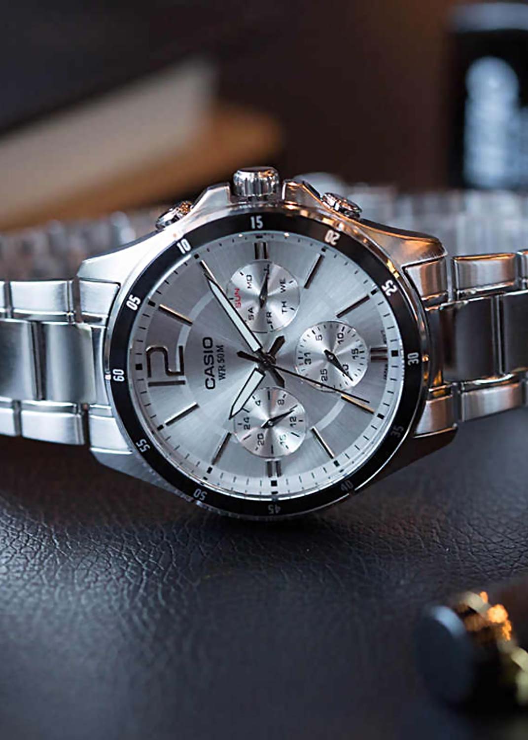 - мужские, японские, кварцевые, WR, стекло: минеральное, 45x49мм, толщина 8,7мм, ширина браслета 22мм, вес 110г, MTP-VD300