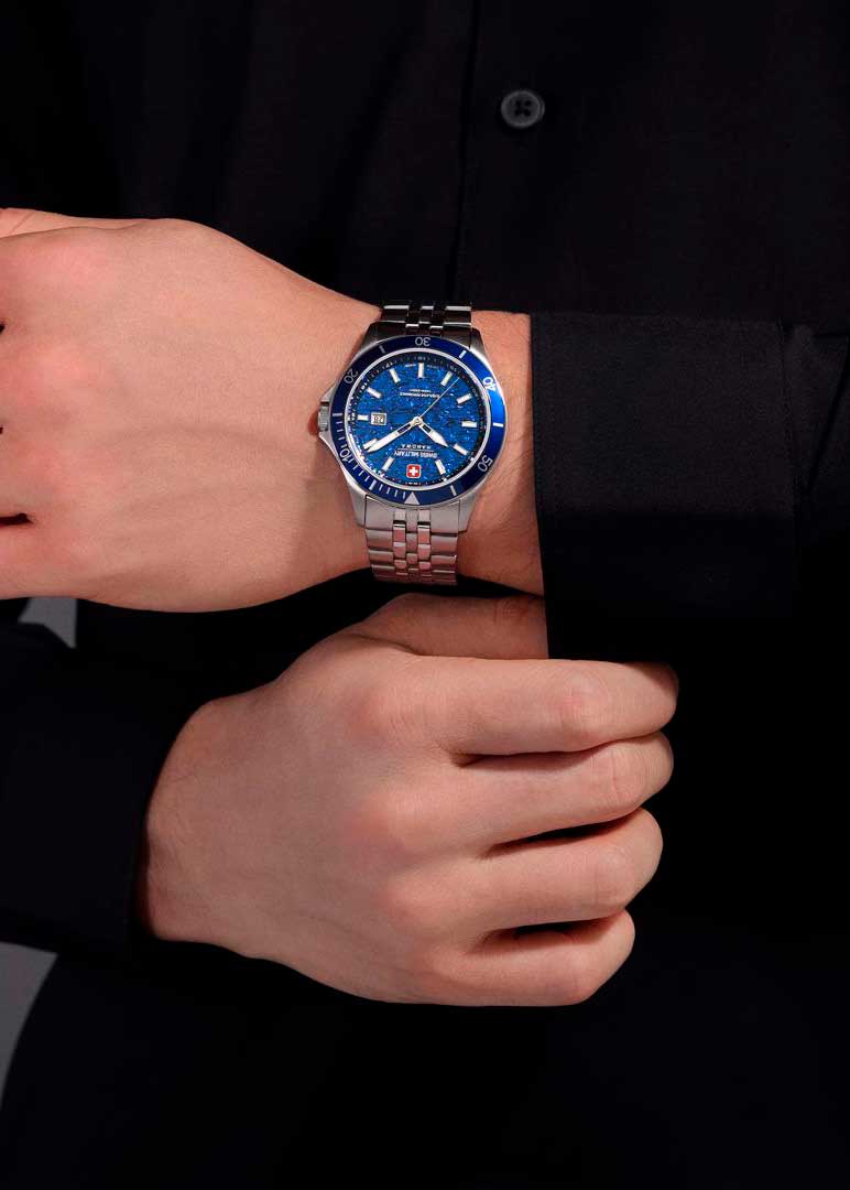 - мужские, швейцарские, кварцевые, 100WR, стекло: сапфировое, D 42мм, ширина ремешка 22мм