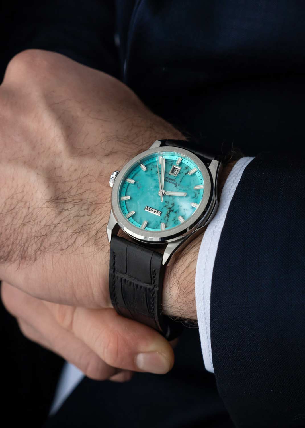- мужские, Германия, механические с автоподзаводом, 100WR, стекло: сапфировое, D 42мм, толщина 13мм
