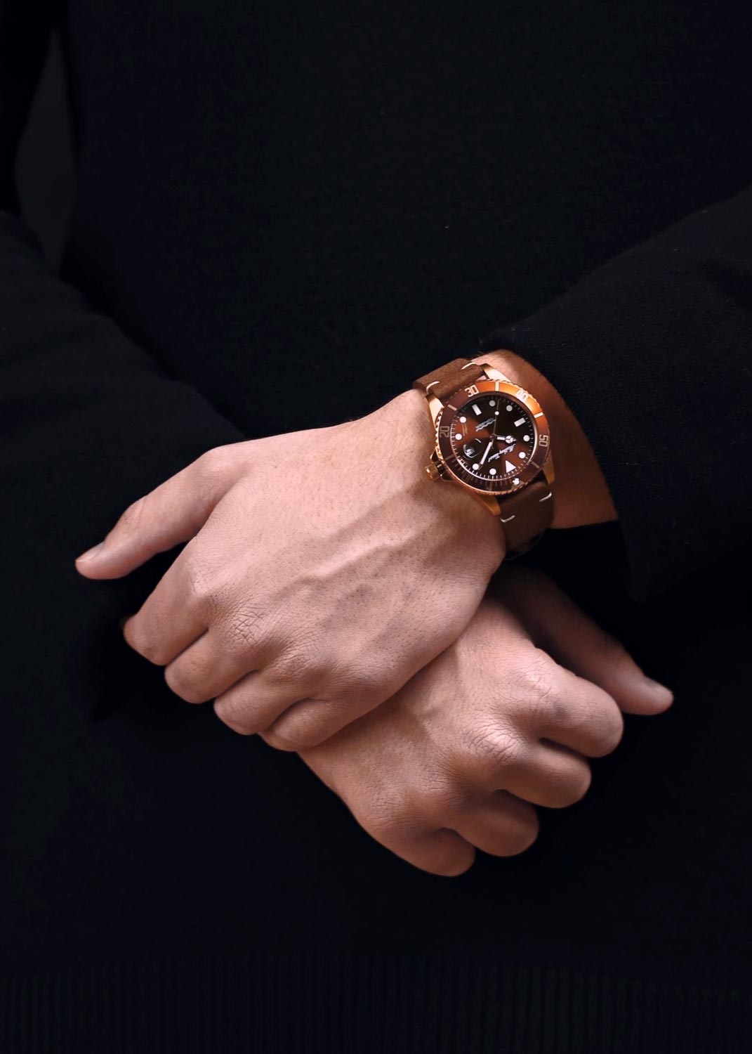 - мужские, Гонконг, кварцевые, 50WR, стекло: минеральное, D 46мм, толщина 13мм, ширина ремешка 24-22мм, вес 78г