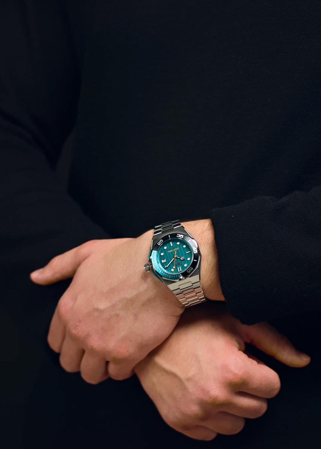 - мужские, российские, механические с автоподзаводом, 50WR, стекло: сапфировое, D 42мм, толщина 13мм, ширина браслета 26мм
