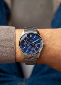 Метки и стрелки с люминесцентным покрытием, которое светится в темноте после непродолжительной зарядки на свету. Рифленая заводная головка. Завинчивающаяся задняя крышка. Надежный стальной браслет с раскладывающейся застежкой.