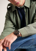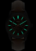 Метки и стрелки с люминесцентным покрытием, которое светится в темноте после непродолжительной зарядки на свету. Рифленая заводная головка. Ремешок с классической застежкой.
