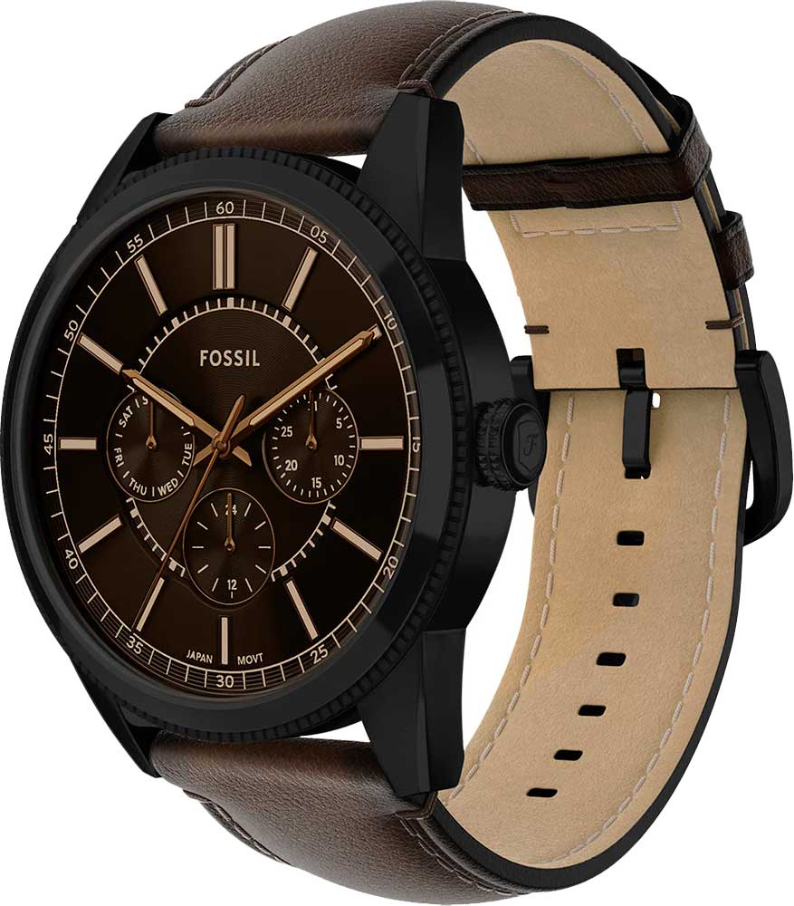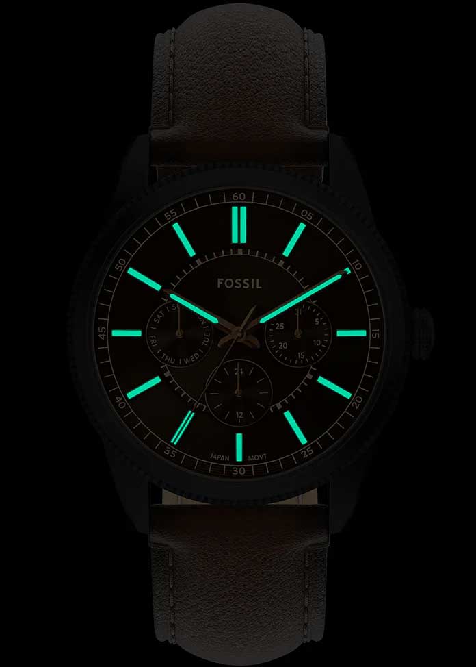 Метки и стрелки с люминесцентным покрытием, которое светится в темноте после непродолжительной зарядки на свету. Рифленая заводная головка. Ремешок с классической застежкой.