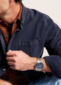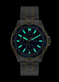 Метки и стрелки с люминесцентным покрытием, которое светится в темноте после непродолжительной зарядки на свету. Рифленая заводная головка с защитой. Завинчивающаяся задняя крышка. Надежный стальной браслет с раскладывающейся застежкой.