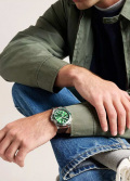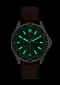 Метки и стрелки с люминесцентным покрытием, которое светится в темноте после непродолжительной зарядки на свету. Рифленая заводная головка с защитой. Завинчивающаяся задняя крышка. Кожаный ремешок с классической застежкой.
