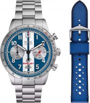 Сквозь прозрачное окошко на циферблате можно наблюдать за работой механизма часов. Секундная стрелка вынесена на отдельный циферблат. Рифленая заводная головка. Прозрачная задняя крышка. Удобный кожаный ремешок с классической застежкой.