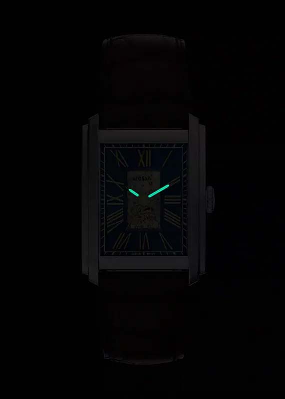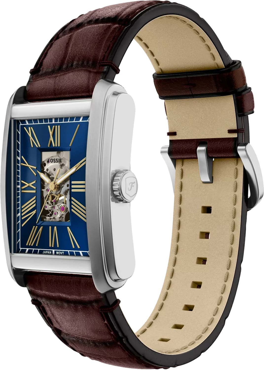 Рифленая заводная головка. Задняя крышка с прозрачным окошком, через которое можно наблюдать за работой механизма, крепится на 4-х винтах. Кожаный ремешок с классической застежкой.