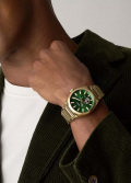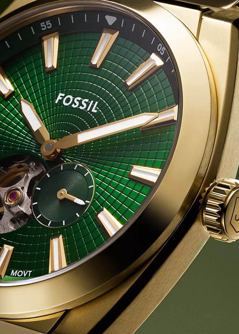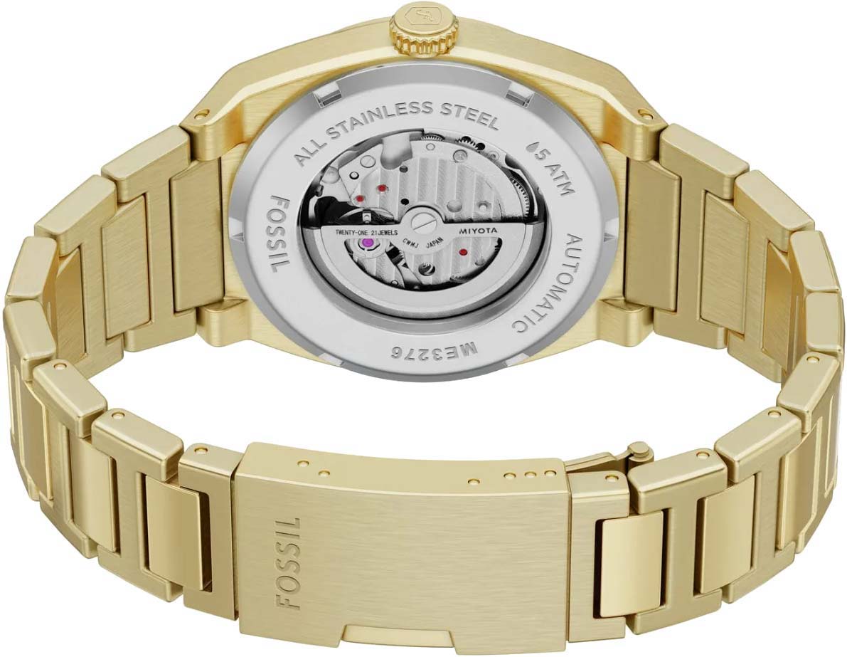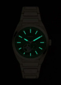 Рифленая заводная головка. Задняя крышка с прозрачным окошком, через которое можно наблюдать за работой механизма, крепится на 4-х винтах. Стальной браслет с раскладывающейся застежкой.