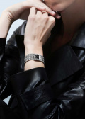 Заводная головка спрятана в корпус, что подчеркивает лаконичность дизайна. Стальной браслет с раскладывающейся застежкой.