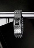Циферблат выполнен из оникса глубокого черного цвета. Метки отсутствуют. Закругленные стальные прямоугольные стрелки в стиле Baton с полированной поверхностью.