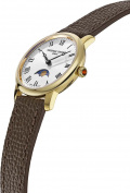 Рифленая заводная головка в форме луковицы, украшена камнем в форме кабошона. Завинчивающаяся стальная задняя крышка. Удобный ремешок из натуральной кожи. Раскладывающаяся застежка и система быстрой замены ремешка.
