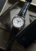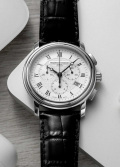 Круглый стальной корпус. Циферблат украшен узором гильоше и защищен прочным сапфировым стеклом. Метки в виде римских цифр. Окошко даты находится в положении 4 часа.