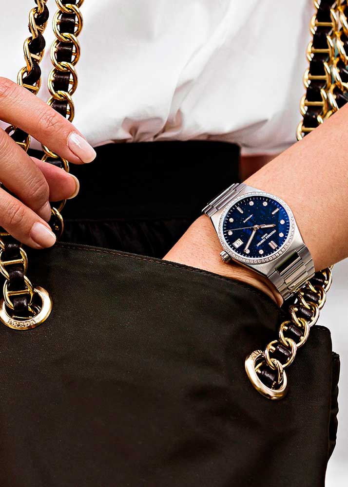 - безель и циферблат украшены бриллиантами