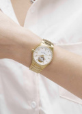 - корпус украшен кристаллами, циферблат украшен 8 бриллиантами 0,04К