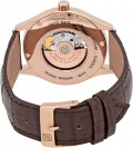 Накладные метки в виде штрихов и римских цифр. Сквозь прозрачное окошко на циферблате можно наблюдать за работой механизма часов. Завинчивающаяся прозрачная задняя крышка. Ремешок из телячьей кожи с классической застежкой.