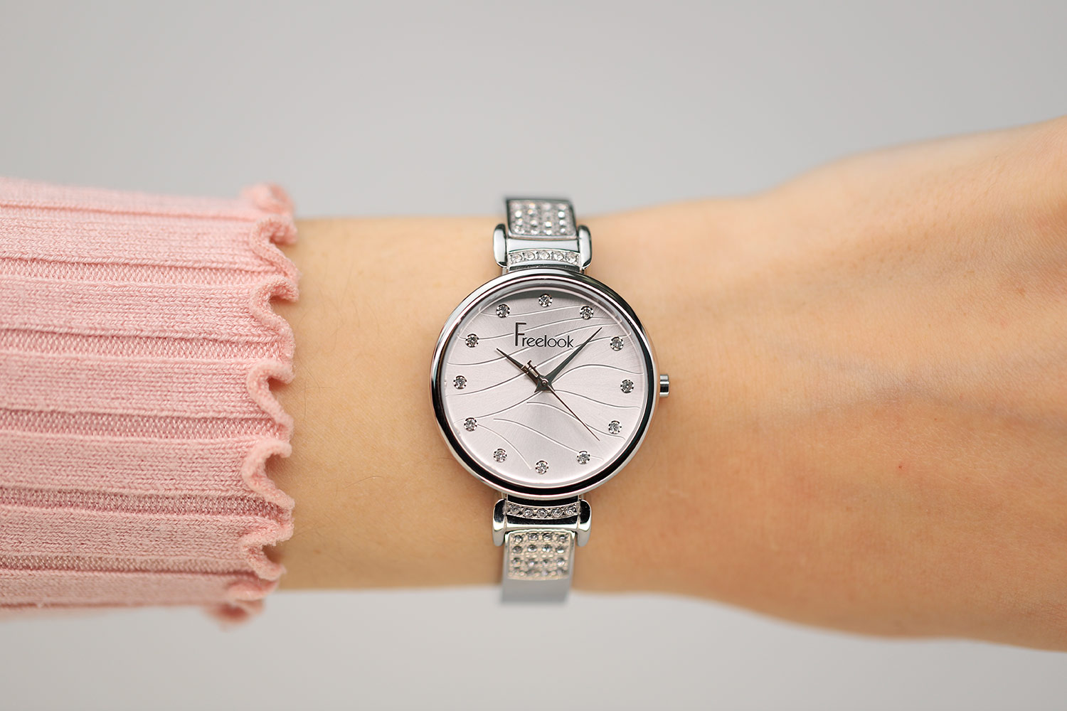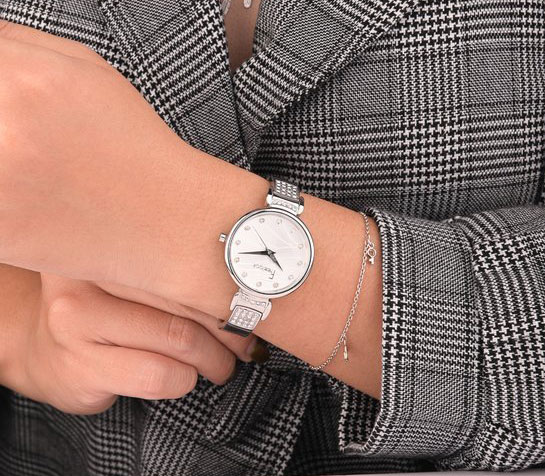 - циферблат, корпус и браслет украшены кристаллами Swarovski