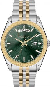 покрытием, которое светится в темноте после непродолжительной зарядки на свету. Завинчивающаяся задняя крышка. Надежный стальной браслет с раскладывающейся застежкой. Секундная стрелка, циферблат, рифленая заводная головка и застежка украшены фирменным логотипом Freelook.