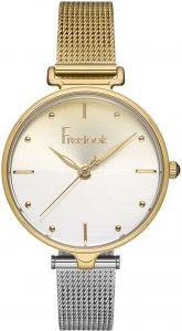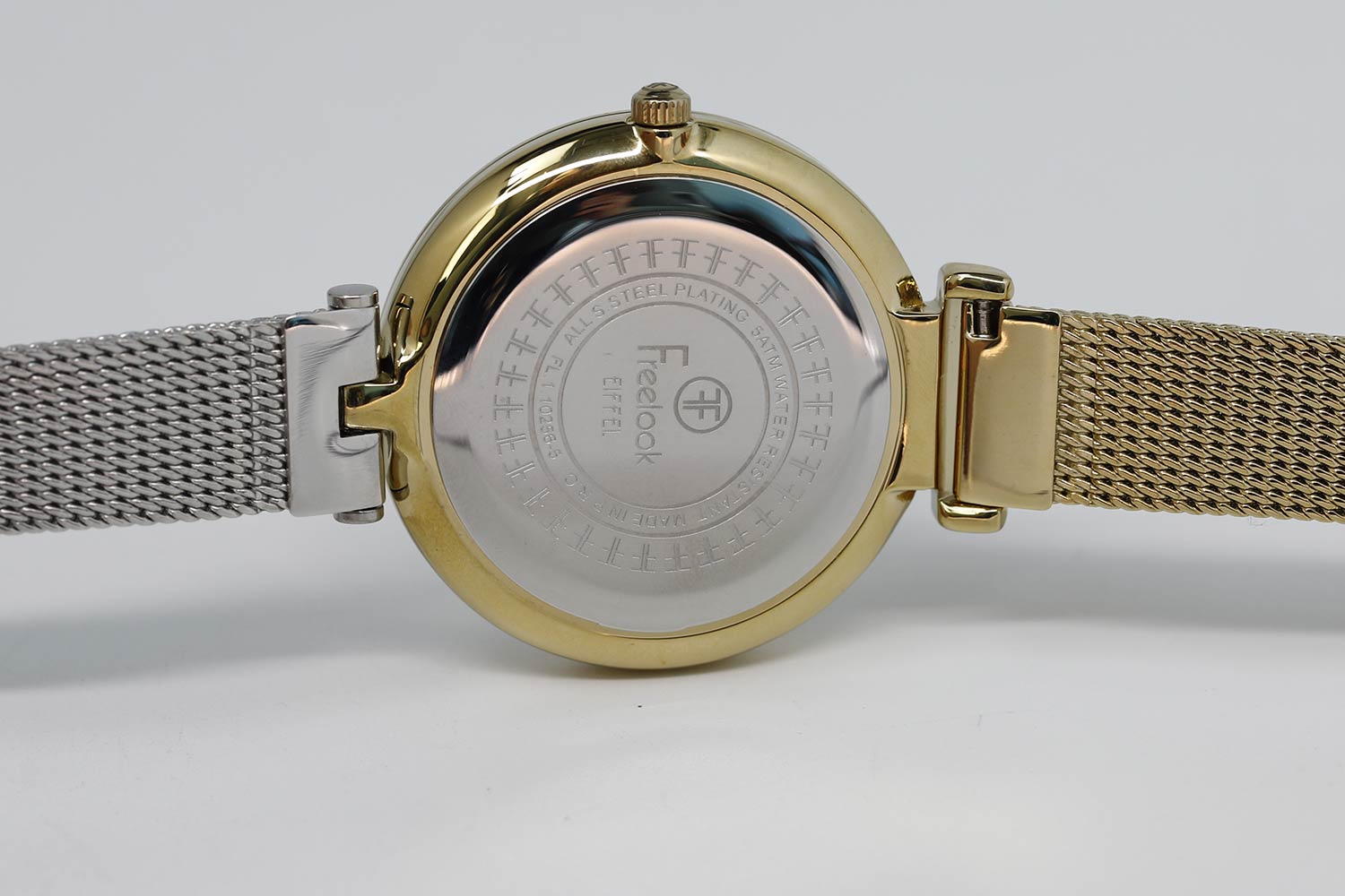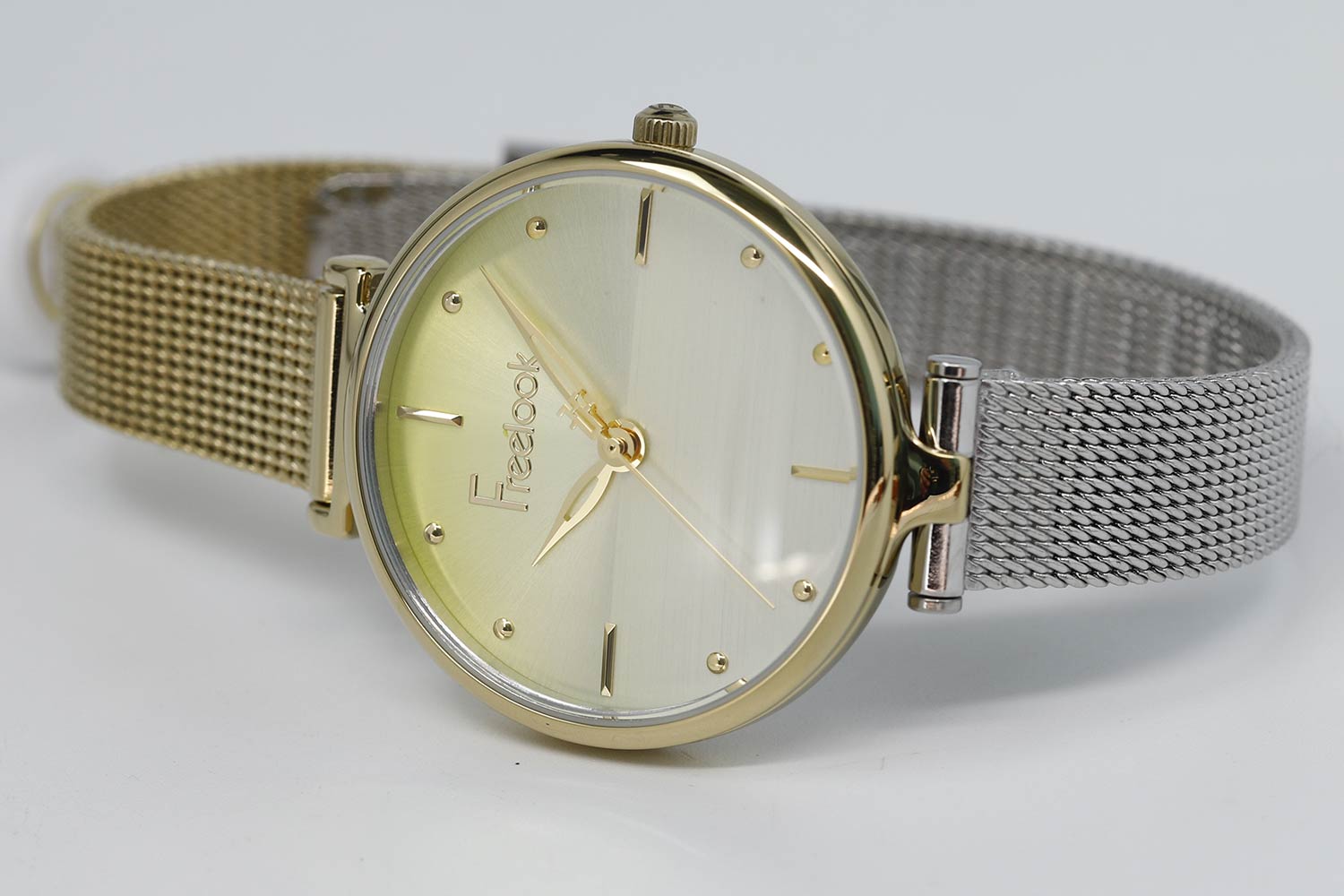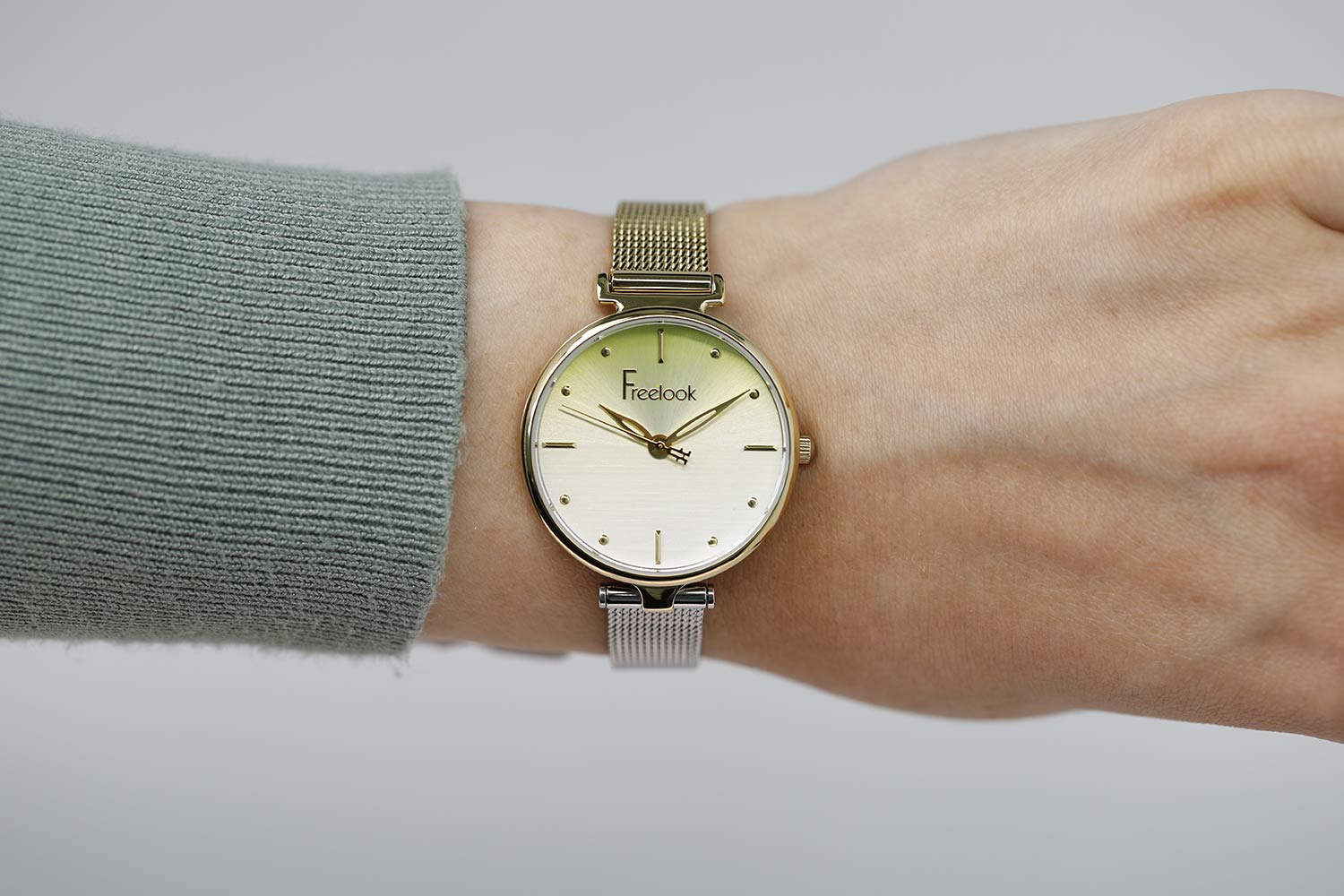 покрытием по концепции гибридного дизайна часов. Циферблат, секундная стрелка, рифленая заводная головка и регулируемая застежка украшены фирменным логотипом Freelook.