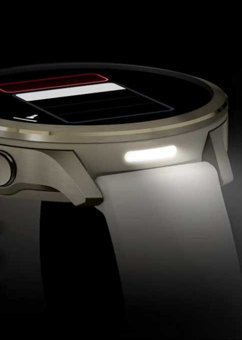 Датчики: барометрический альтиметр, компас, гироскоп, акселерометр, датчик света, Pulse Ox (показывает уровень кислорода в крови).