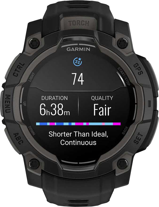 Датчики: барометрический альтиметр, компас, акселерометр, гироскоп, термометр, Pulse Ox (показывает уровень кислорода в крови).